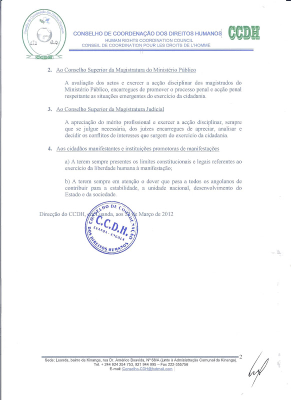 O Conselho de Coordenação dos Direitos Humanos (CCDH) tornou pública uma nota em "atenção às manifestações" aos 22 de Março de 2012 e que publicamos a baixo: