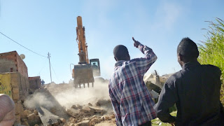 Esta manhã (12 de Junho de 2012), a partir das 4H00, um destacamento da polícia de mais de 20 polícias armados e fardados, mais uns poucos à paisana, postaram-se na zona do Arco-Iris. Seguiram-se-lhes os tractores que iniciaram, a partir das 5H00, a demolir as casas. No total, foram demolidas 8 casas, todas elas com cobertura. Somente para recordar que ontem foram demolidas 3 casas com cobertura. Em todas estas casas, a maior parte dos bens ficou entre os escombros, tendo os populares retirado somente o que era possível salvar.